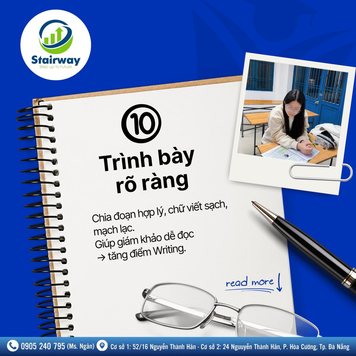 Chia đoạn hợp lý, chữ dễ đọc → giám khảo dễ hiểu → điểm cao hơn.
