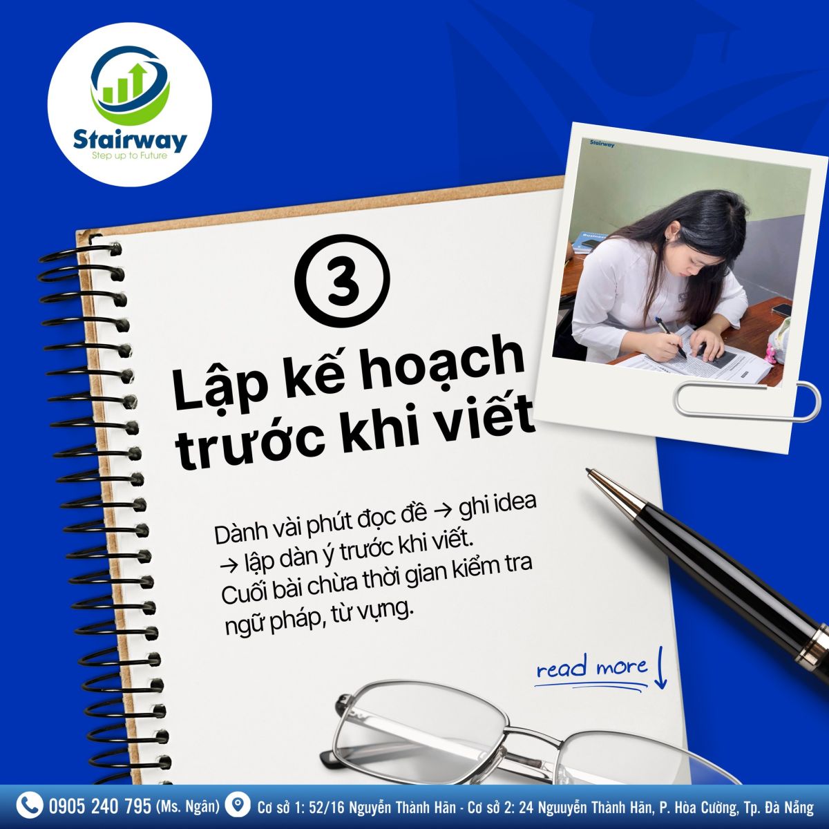 Dành vài phút đọc đề – chọn idea – lập dàn ý. Cuối giờ nhớ check lỗi.