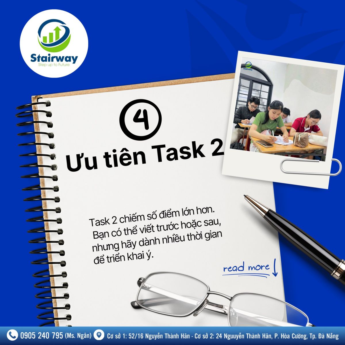 Task 2 chiếm số điểm trọng hơn. Hãy ưu tiên thời gian cho phần này.