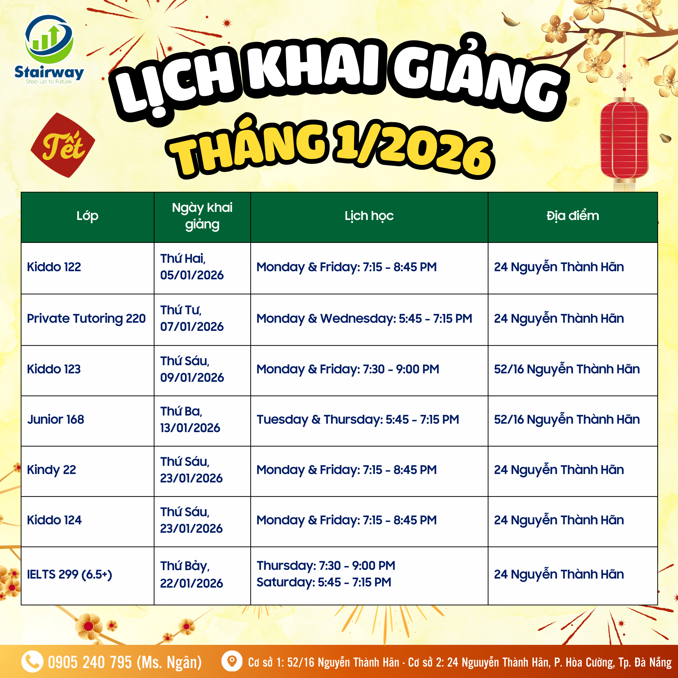 Hãy để STAIRWAY đồng hành cùng bạn, vừa “học nghiêm túc”, vừa “bứt phá tiếng Anh” ngay từ những bước đầu tiên của năm mới nha ^^