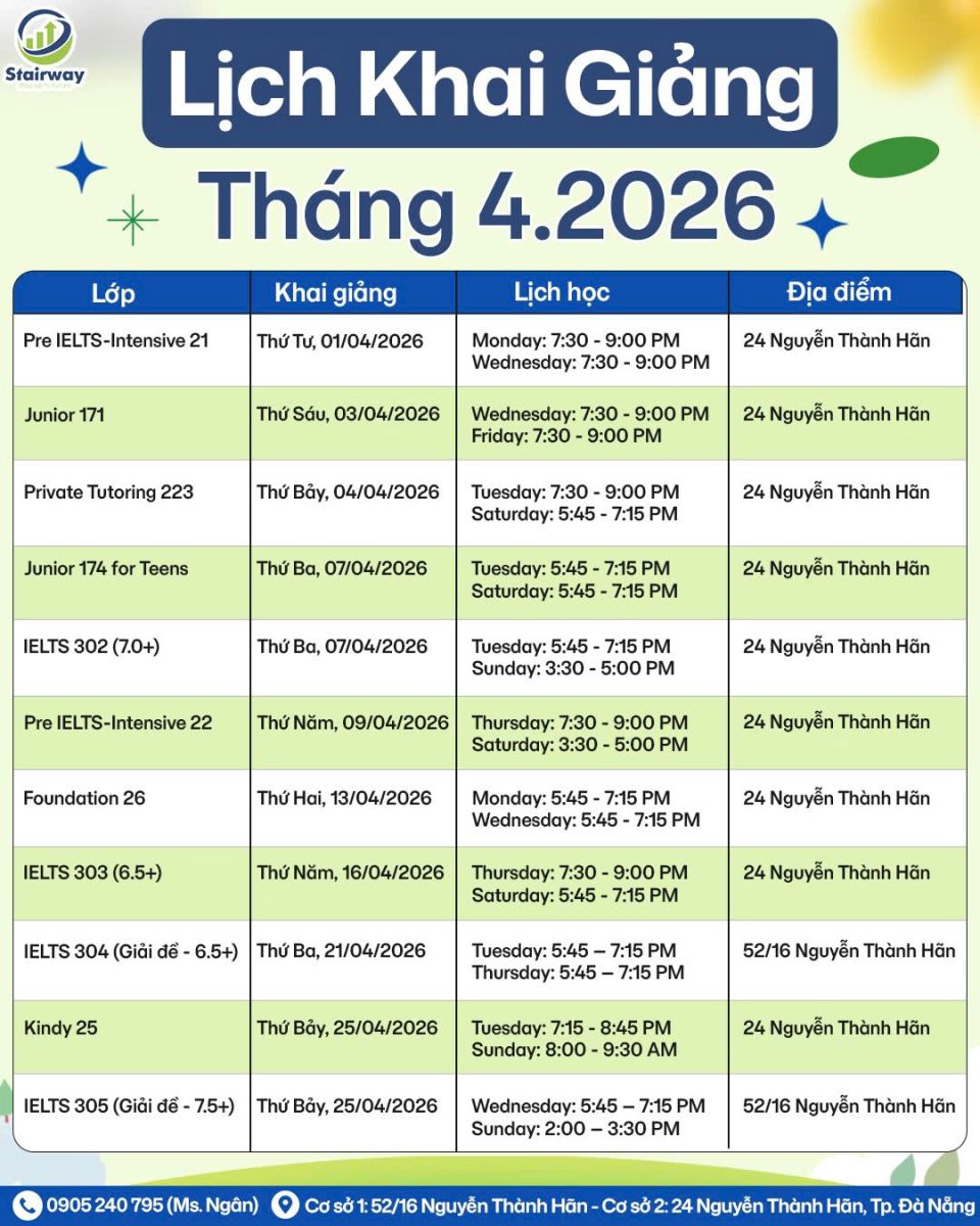 Hãy để STAIRWAY đồng hành cùng bạn, vừa “học nghiêm túc”, vừa “bứt phá tiếng Anh” ngay từ những bước đầu tiên của năm mới nha ^^