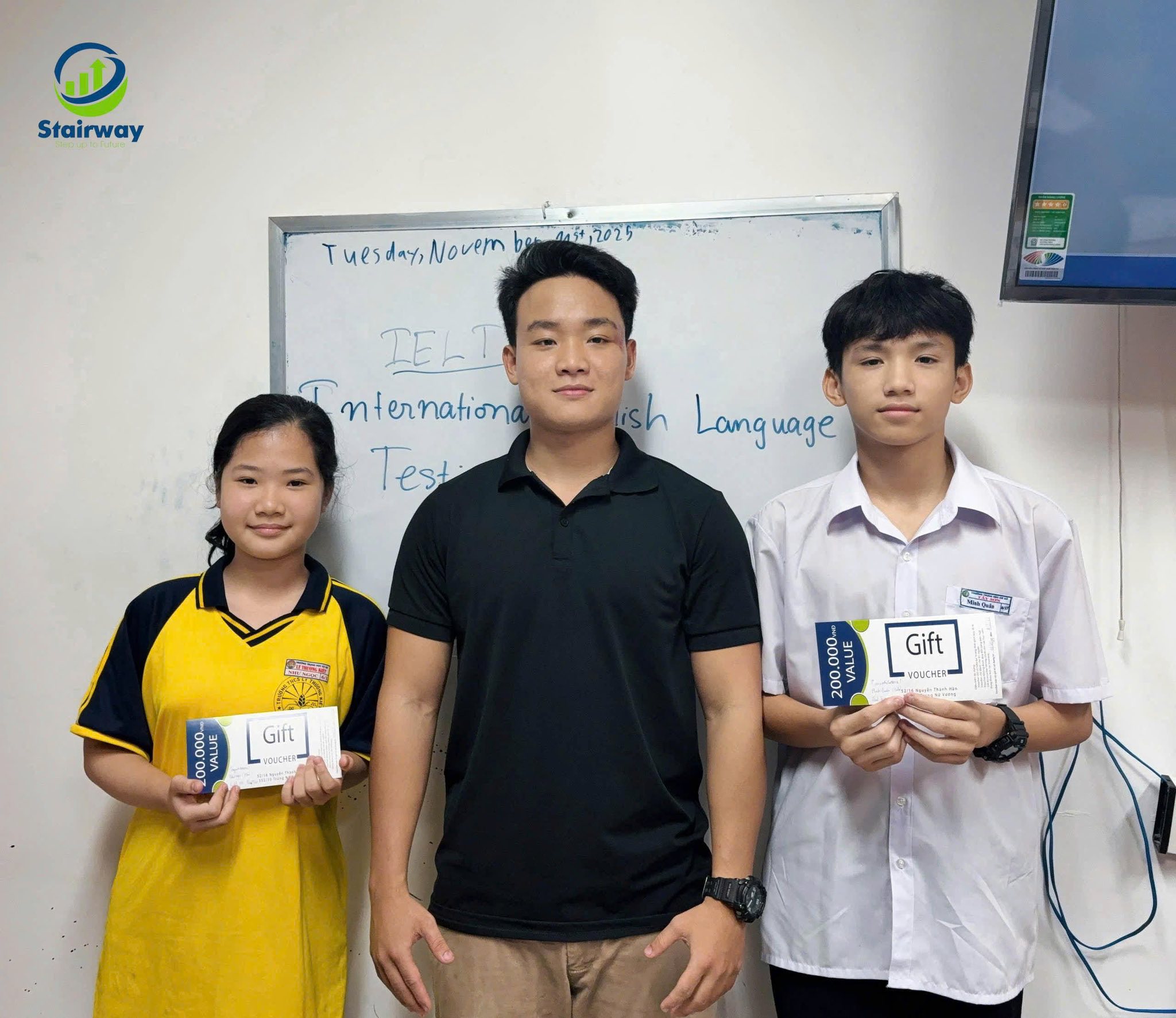 STAIRWAY rất tự hào về sự nỗ lực và tinh thần học tập chăm chỉ của các bạn. Cả hai bạn còn được tặng voucher xịn xò nữa – niềm vui nhân đôi luôn!